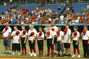 | July TBA 7:00 pm Tampa Bay Devil Rays vs MLB Team Tropicana Field, St. Petersburg, FL All players who show up in uniform may go on the field before the game in an Opening Ceremonies parade. |
